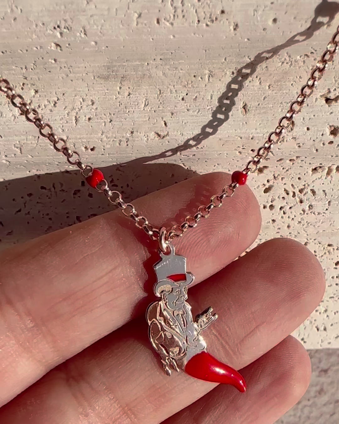 Portafortuna Necklace con Gobbo e Corno Rosso Argento 925